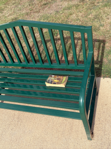 Last night, as I returned from downtown Banner Park was host to a group of cats. I didn’t think anything of it, but this morning there was a copy of a Warriors book sitting on one of the park benches. Since it was still there this afternoon, I brought it home as my collected object.
